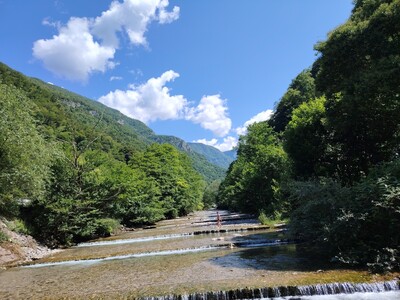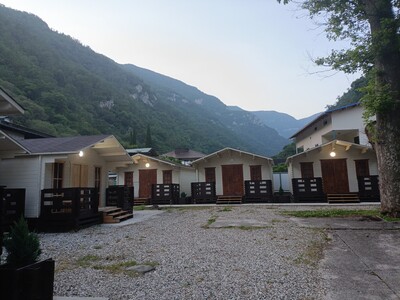 + Потрясающей красоты ущелье. Здесь всегда прохлпаднее на несколько градусов. Прямо у подножия - чистая горная река, в которую так приятно окунуться жарким днем. Вода - чистая и прозрачная, шум реки обаюкивает. Территория небольшая, кухня обустроена всем необходимым, Территория комплекса расположена в 5 минутах от ж/д станции Абаата и замка принца Ольденбургского. Говорят, что сейчас там проходят реставрационные работы, аоэтому вроде как не пусксют. Мы были в нем в 2022, очень живописно.- Не все домики сделаны качественно, в нашем были щели. Матрасы пружинные, не очень удобные, но это мелочи по сравнению с красотой места. До моря минут 15.