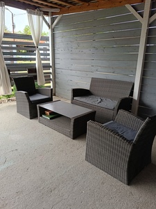 + Ехали за тишиной, солнцем, морским воздухом, получили все сполна. Территория небольшая, но для двух домиков больше чем, достаточно. Есть место для парковки, барбекю, игр на траве. Это не отель или гостиница, больше похоже на дачу у моря. Хозяйка заботливая и внимательная. Постоянно была на связи по вотсап. Дом чистый, просторный для проживания двоих - троих человек. Вода горячая была в достаточном количестве. На кухне все необходимое есть, даже кофеварка.- Были отключения электричества по всей абхазии, но это даже на пользу. Можно во время отсутствия цивилизации, подумать о насущном, больше времени уделить близким, коротая пару часов в настольные игры при свечах.