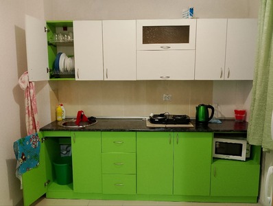- Сам дом достаточно старый, подъезд без ремонта. К сожалению, могут иногда ненадолго отключать свет или воду, но это общая проблема для Пицунды