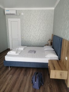 Двухместный номер с возможностью дополнительного размещения (оплачивается отдельно). В номере двуспальная кровать, диван-кровать, шкаф, прикроватные тумбочки, журнальный столик, стол, вешалка, зеркало, сплит-система, телевизор, мини-холодильник, фен, эл. Чайник, балкон (общий). На территории отеля находится столовая. Завтрак включен в стоимость проживания, обед и ужин оплачиваются отдельно. Возможна организация экскурсий. Дети до 3х лет размещаются бесплатно без предоставления места. До моря 30 метров.