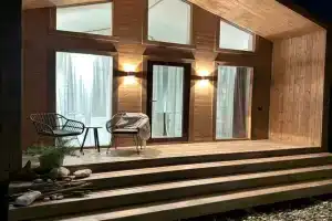 Загородный эко-отель "Aqua resort Dacha" близко к морю (250 метров) отлично подойдет вам,... если вы цените спокойствие, естественность природы и уединение. На территории Дачи располагаются 10 двухкомнатных барнхаусов c панорамными окнами, кухонной зоной и собственной террасой каждый, многофункциональный йога-зал и баня. Наши преимущества: - бесплатная парковка - зона BBQ - баня на территории (в соответсвии с прайсом на даче) - гамаки - видеонаблюдение - бесплатный wi-fi - закрытая территория (только для гостей, проживающих на даче) - вид на лес - курение в отведенных местах - близость к морю (250 метров) - пустынный, дикий пляж - зал для занятий йогой с красивыми видами - pet-friendly (за размещение животных доплата 500 рублей в сутки) - распитие алкогольных напитков в публичных местах запрещено. КОМПЛЕКТАЦИЯ БАРНА. Спальня: - кровать двуспальная (боксы раздвижные) - доп место - футон по желанию - гардеробный лофт - прикроватные тумбочки - напольный торшер - кондиционер. Дополнительная комната с кухонной зоной: - кресло раскладное - барная стойка - 2 барных стула - кухонный гарнитур - электрическая плита - холодильник - чайник - кухонные принадлежности и посуда. Собственная терраса и ванная комната. Максимальная вместимость: 4 взрослых + ребенок до 5 лет. Вы сможете заказать дополнительно трансфер и экскурсии прямо от отеля. На территории дачи есть возможность заказать доставку еды до 21:00. К вашим услугампрачечная. Еще...