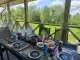 + На огороженном участке два дома, нам повезло и мы были одни. Большая территория, лежаки, качели для детей, мангальная зона и место для кострища, до реки с пирсом 5 минут ходьбы. Хорошая баня на территории, но мы не пользовались. По утрам несколько раз мимо участка проходила косуля, наблюдали аиста и слушали пение различных птиц, остались в восторге от природы. В доме современная, приятная обстановка, но мы в основном проводили время на веранде.- Из минусов выделю высокую траву на участке, было некомфортно ходить, хотелось покосить. Вода в кране с запахом канализации, поэтому для питья и чая лучше взять побольше бутилированной воды. Из пожеланий - нам не хватило базовых средств гигиены: гель для душа, шампунь, освежитель воздуха.