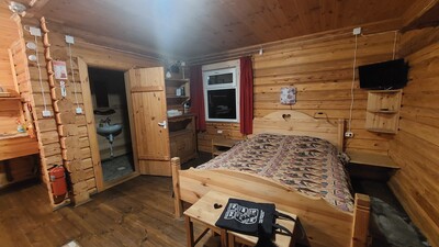 Бревенчатый дом, 25кв. Выполнен в виде студии.