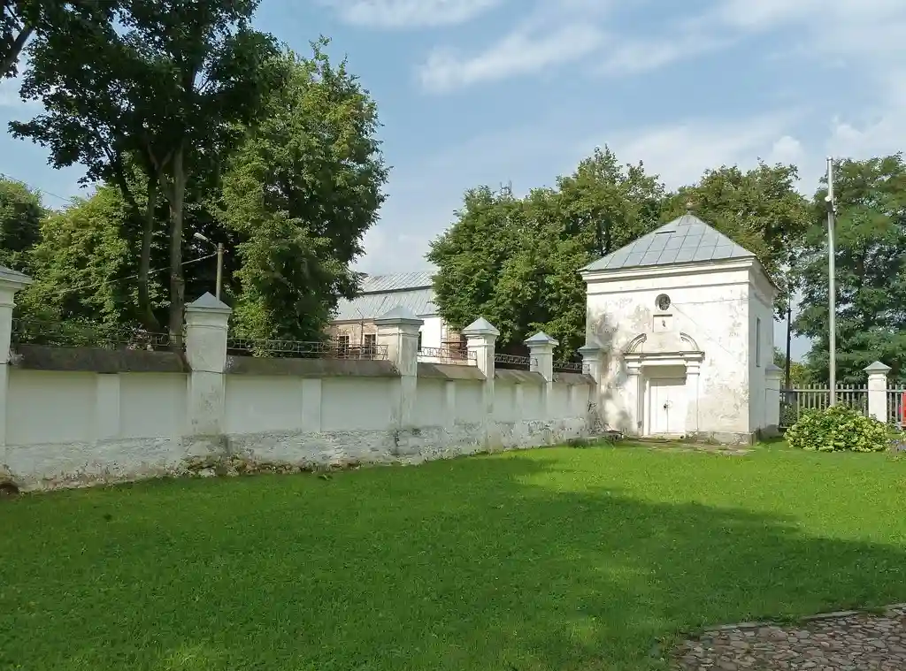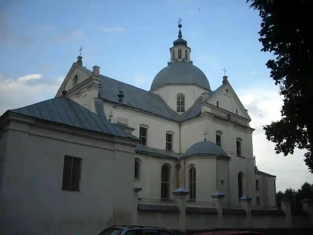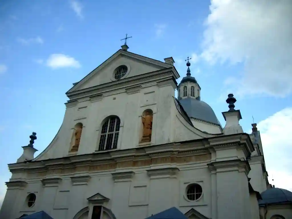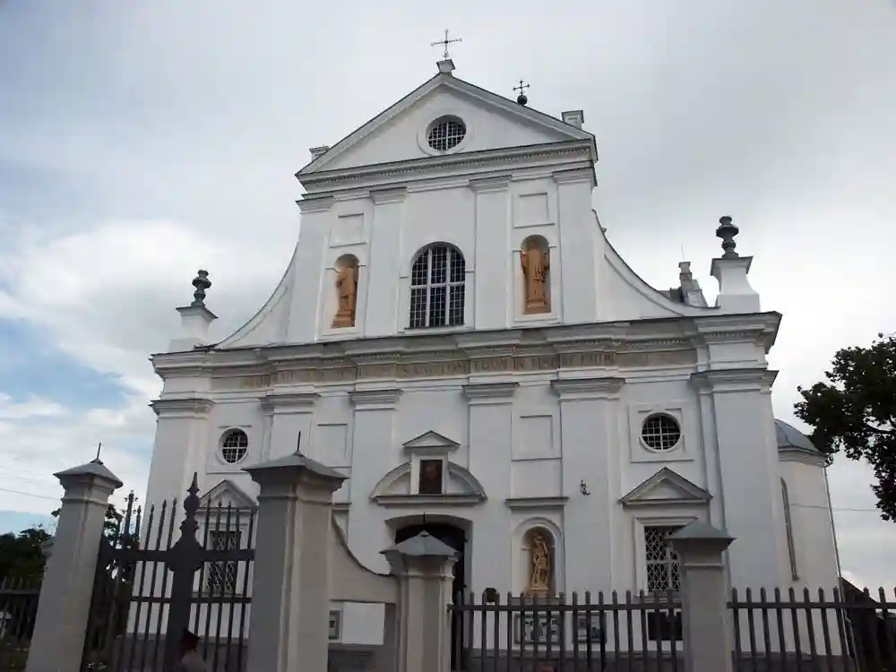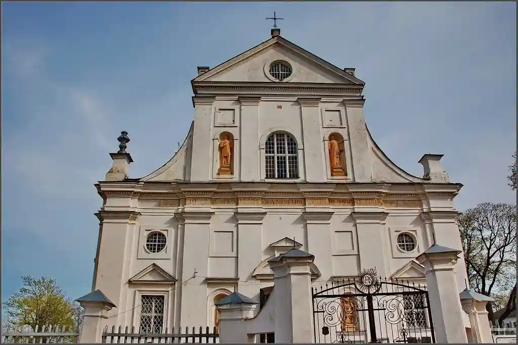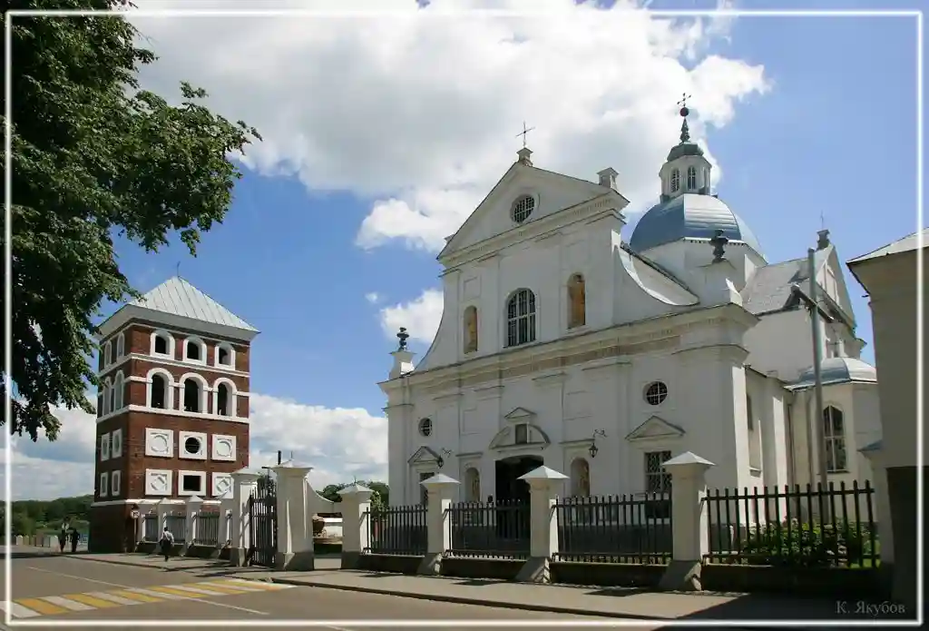 Главный алтарь костёла украшен картиной «Тайная вечеря» художника Геского. Он же выполнил реставрацию подкупольного пространства в 1752—1754 гг. Возле храма находится часовня Булгарина, построенная в 1747 году итальянским архитектором Маурицио Педетти для деда писателя Булгарина.