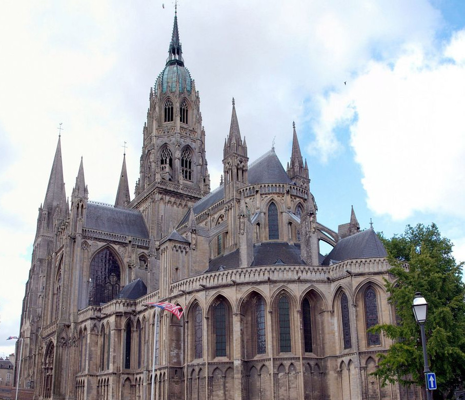 На месте где находится нынешний собор в галло-римскую эпоху располагался форум города Августодурум. Епархия в Байё основана в III веке, при Меровингах здесь был построен кафедральный собор. После пожара, который серьёзно повредил здание, граф Байё Гуго II (1015—1049) принял решение о строительстве нового собора на прежнем месте. Закончено возведение храма было при преемнике Гуго Одоне (1049—1097). 14 июля 1077 года новое здание было освящено в присутствии герцога Нормандии и короля Англии Вильгельма Нормандского.