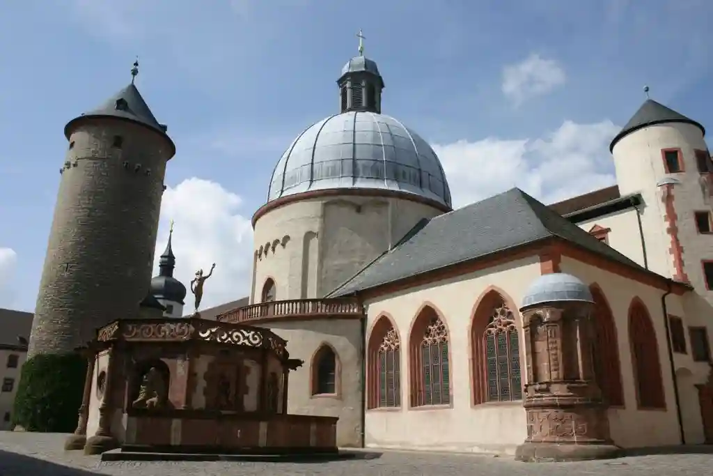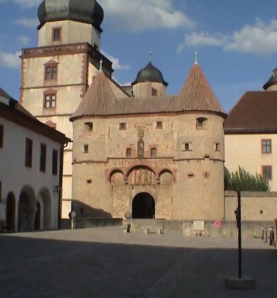Ещё в кельтские времена на холме, на котором стоит крепость, находилось ограждённое поселение и языческое святилище. На его месте была построена самая древняя церковь Вюрцбурга Мариенкирхе, в которой хоронили вюрцбургских епископов. Под крепостью у Майна находится самая древняя церковь города, носящая имя св. Буркхарда.