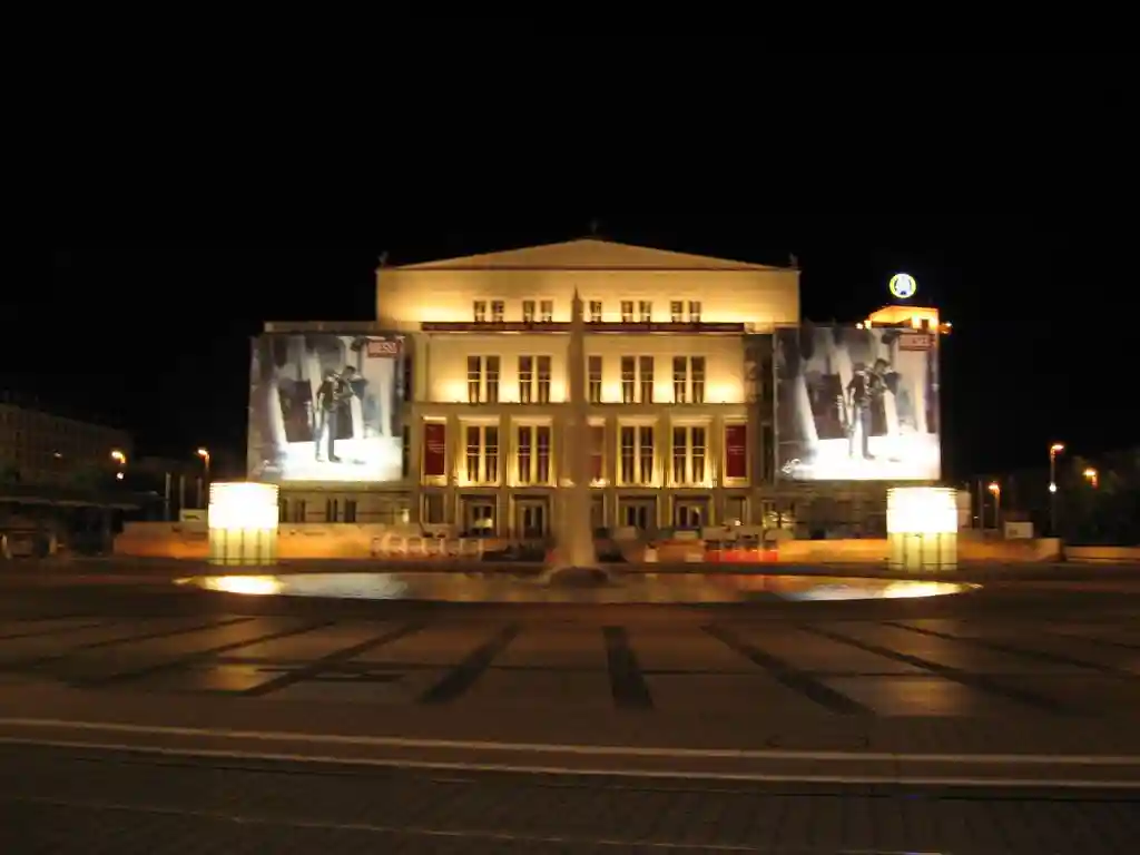 28 января 1868 года на Августус-платц состоялось торжественное открытие «Нового театра», которое почтила свои присутствием королевская чета Саксонии. Помимо ставших традиционными Моцарта, Глюка и Вебера в новом театре уделяли большое произведениям Рихарда Вагнера. Например, в 1878 году были поставлены все четыре оперы цикла «Кольцо Нибелунга», впервые за пределами Байройтского фестивального театра. XX век привнес новые направление в деятельность Лейпцигской оперы. Здесь стали ставить современных композиторов. В 1930 году именно здесь состоялась премьера оперы «Расцвет и падение города Махагони» Курта Вайля и Бертольта Брехта.