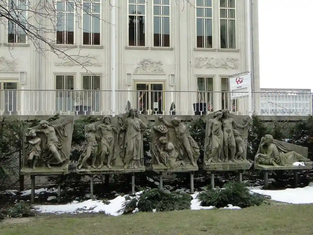Когда в 1950 году было принято решении о строительстве нового здания Нового театра, был объявлен конкурс на лучший проект. Спустя год решено было объявить новый конкурс на лучший проект Оперного театра на Августус-платц, но результаты не удовлетворили организаторов. Третий конкурс был проведен в 1952 году: его выиграл архитектор из Варшавы Петр Биганьски, но вскоре проект был признан слишком дорогим. В итоге арихтекторами были назначены Куны Нираде и Курт Хеммерлинг. Их проект содержал скульптуры и статуи на портиках. В соответствии с духом времени проект был переработан в духе «сталинской архитектуры»: был создан новый фасад, а статуи навсегда исчезли из проекта.