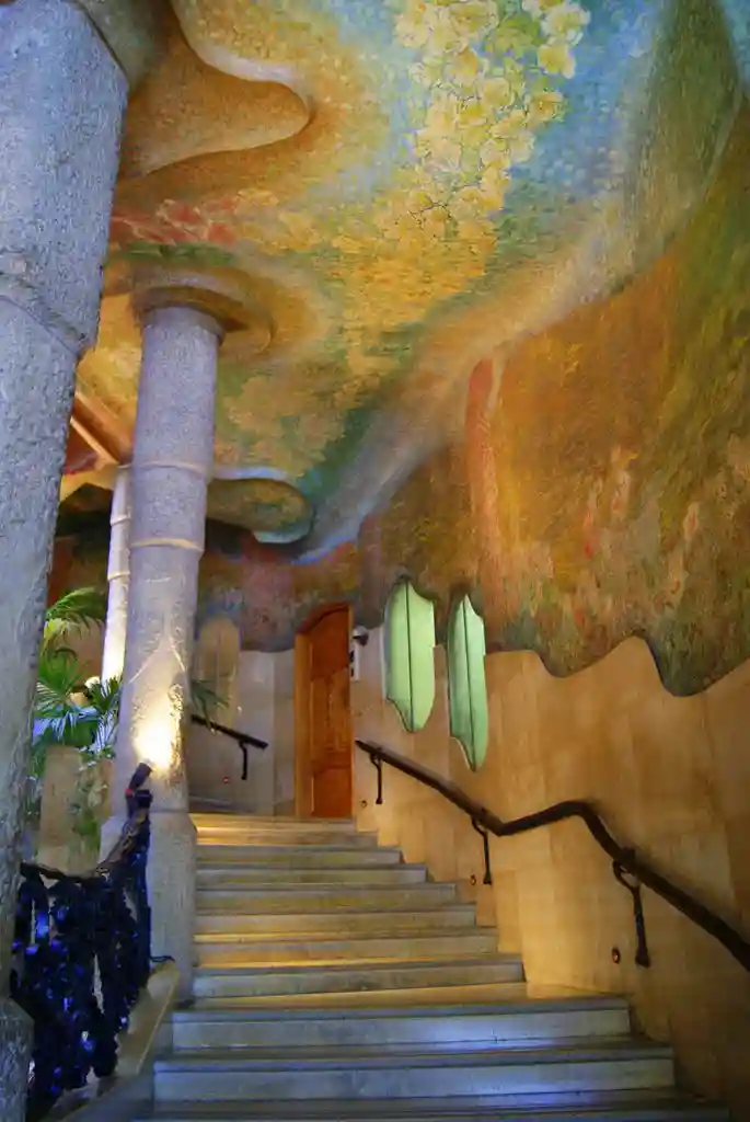 Значительным нововведением Гауди стало объединение традиционных световых шахт в 2 широких внутренних двора-патио, имеющих необычную извилистую, «органическую» конфигурацию. Этажи организованы вокруг патио для оптимальной вентиляции и максимального доступа дневного света. Выходящие в патио фасады здания покрыты полихромной росписью, в основном с растительными мотивами. Цветочный декор и навеянные мифологическими мотивами фрески также украшают потолки и стены двух входных вестибюлей и главной лестницы.