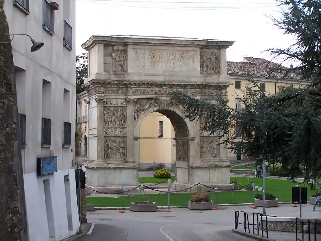 Важным центром паломничества для христиан со всего мира является расположенный в Беневенто Собор Святого Варфоломея Апостола (Basilica di San Bartolomeo Apostolo), в котором хранятся мощи этого святого. Из древних памятников в Беневенто, где почти каждая стена состоит из обломков алтарей, гробниц, колонн и сводов, особенно замечательна хорошо сохранившаяся, построенная в 114 г. триумфальная арка Траяна (15,5 м вышины), которая теперь под названием Золотых ворот (Porta aurea) составляет городские ворота. Она состоит из простой, вполне сохранившейся арки паросского мрамора с надписью, которую и теперь ещё можно разобрать; на фронтоне находятся рельефные изображения событий из жизни Траяна, но они сохранились только наполовину. Древнеримский амфитеатр (Teatro romano) был изрядно отреставрирован в сравнительно недавнее время, в более нетронутом виде сохранился античный мост.