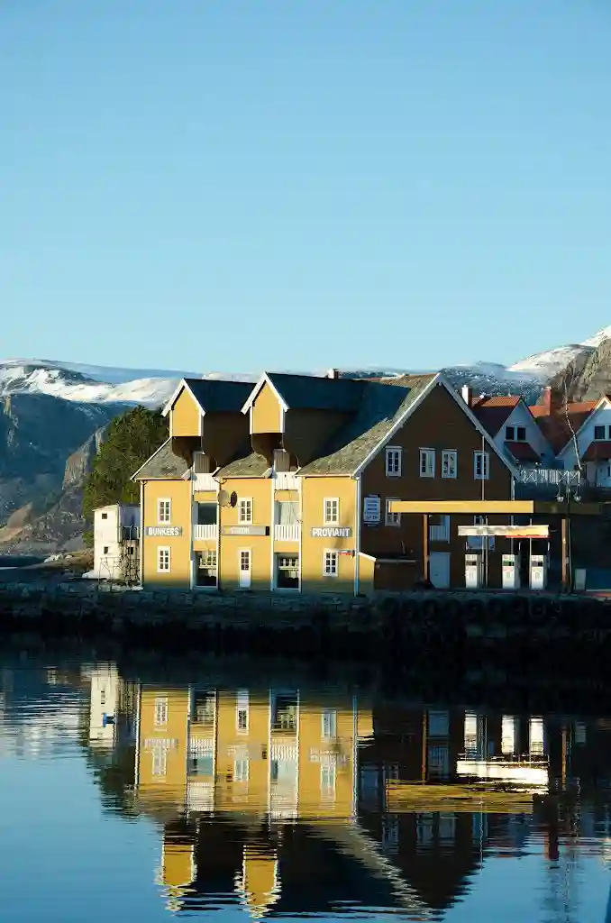 Посёлок расположен в 17 км на северо-восток от города Молёй и в 65 км на юго-запад от города Олесунна. В непосредственной близости от посёлка расположен небольшой остров Селья.