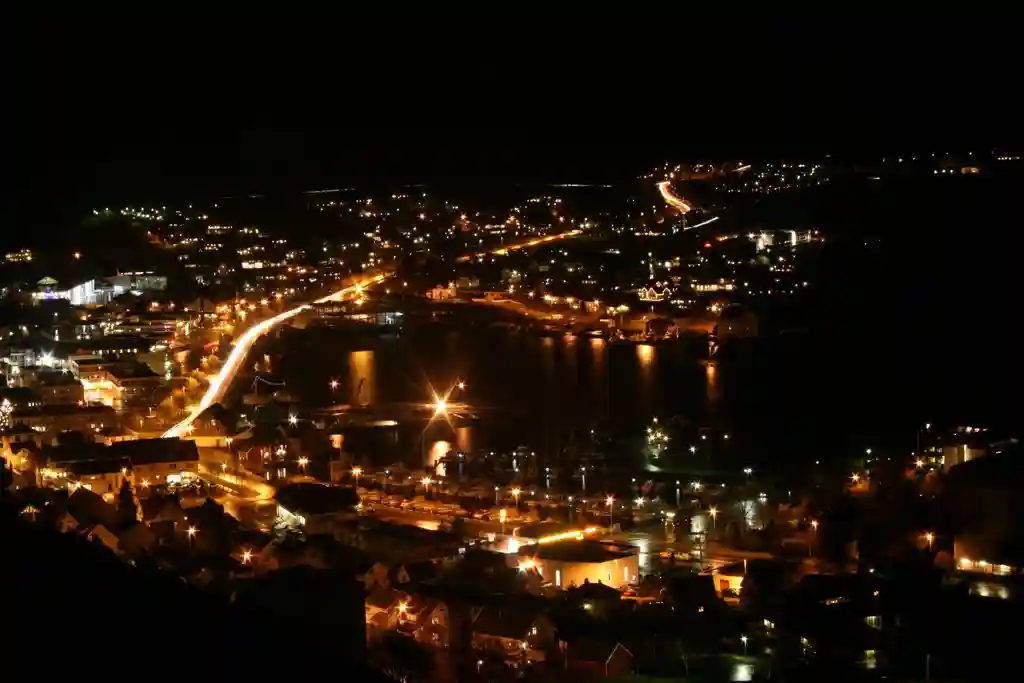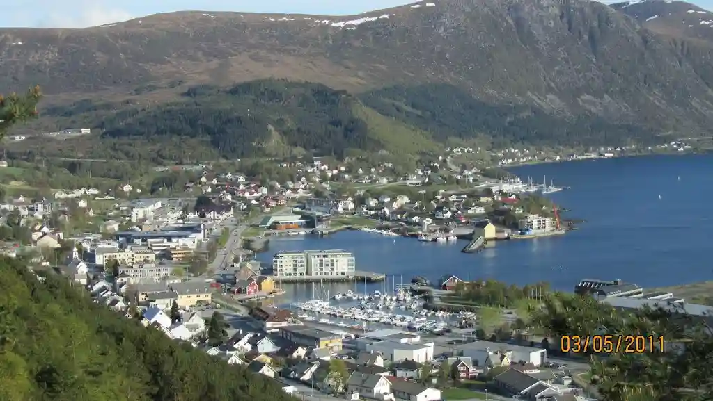 Город расположен на западной стороне острова Hareidlandet, в 23 километрах на юг от города Олесунн.