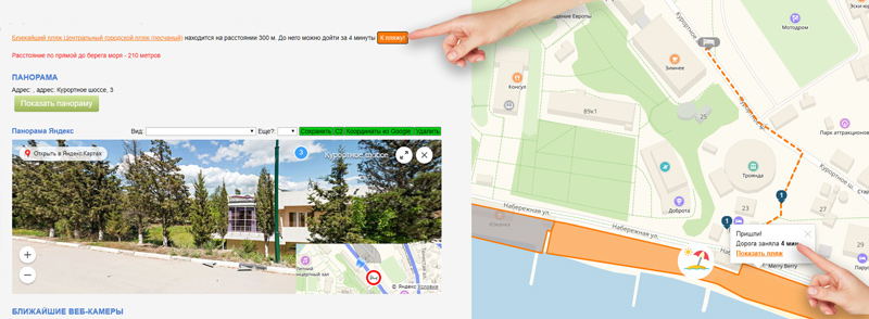 А еще, только у нас Вы сможете сразу узнать время пути до ближайшего пляжа при выборе отеля на море.