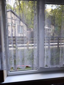- Очень не хватало раковины в санузле (она только на входе в номер в зоне кухни) и розеток (те, что на стене, мало подходят для современных зарядок, и там всего два гнезда). На кухонном окне (мимо проходит основная дорожка) нет плотных штор или жалюзи, и вечером видно всем всем, как и в чем вы идете в (из) с/у или на кухне сидите (стоите). Фена не было, но был свой (возможно, нужно было спросить). Нет микроволновки и очень мало посуды, если готовить самим. Пол сильно пружинит, так что трясется большой шкаф, который атмосферно скрипит)))