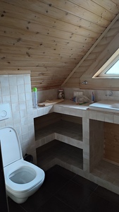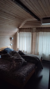 + Ездили отдыхать на ноябрьские праздники, 5 человек, из питера добрались за 1, 5 часа, в общем то не далёко, хозяин нас встретил, все показал - рассказал, в доме тепло, на втором этаже три изолированные спальни, матрасы удобные, одеяла теплые, бельё чистое. На первом этаже туалет с душем, на втором этаже туалет без душа. Камин в гостиной. Было уютно отдыхать. Посуды достаточно (сковородки, кастрюли, бокалы, рюмки, ложки, вилки, доски разделочные) с собой не надо везти. Мангал на улице с крышей, что очень удобно, т. К. С погодой нам не очень повезло. Прогулялись по округе, особо там конечно негде гулять, до небольшого озера идти минут 5. Есть магазин, с небольшим набором необходимых продуктов и разливное пиво )- В душе нет коврика.