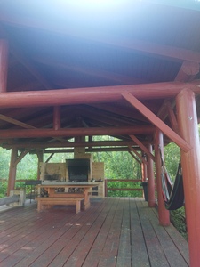 + Отдыхали с 20.07 по 28.07 в домиках у воды. Домики находятся в лесу, воздух и природа просто великолепны. Территория очень красивая, есть зоны со столом для пинг-понга, Дартс. Есть прекрасная шашлычная зона где можно не только пожарить но и поесть. Очень удобный пляж с лежаками и комфортным мелководным заходом в воду.