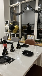 - Кухня с огромным столом, духовкой, плитой, холодильником, микроволновкой, чайником, посудомойкой и посудой для гостей.