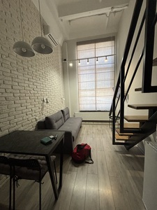 Все апартаменты выполнены в двухуровневой планировке. На первом уровне находятся кухня и рабочее пространство, на втором – удобная кровать и зона отдыха.