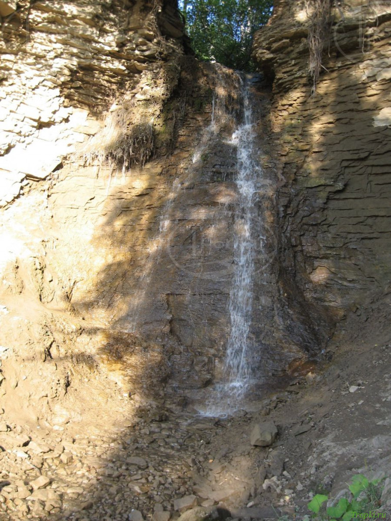 Высота падения воды — 12 метров. В летнее время расход воды небольшой и водопад выглядит как небольшие струйки, стекающие по скале.