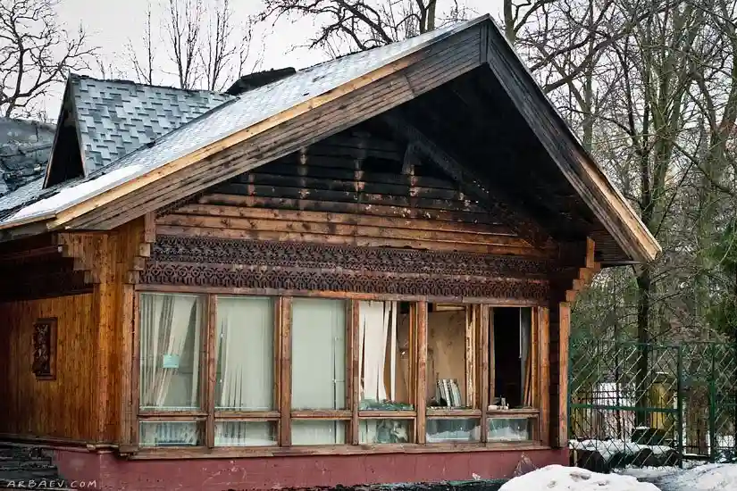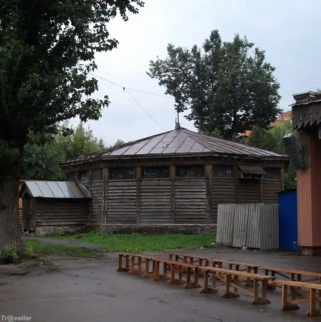 - В парке построено несколько островерхих деревянных «теремков», выполняющих различные функции: торговых палаток, кассы аттракционов и т. д., а также старый (ныне не действующий) зал игровых автоматов. Все они украшены декоративной резьбой по дереву.