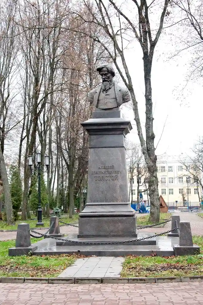 В 1960 году в парке был установлен первый в России бронзовый бюст писателя, графа А. К. Толстого (скульптор Г. П. Пензев; переустановлен в 2008), а 16 августа 1967 года, в связи со 150-летием А. К. Толстого, парку было официально присвоено имя этого писателя:20, почитаемого на Брянщине как выдающегося земляка (он прожил последние 14 лет жизни и похоронен в своём имении Красный Рог, недалеко от Брянска).