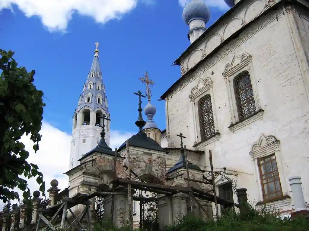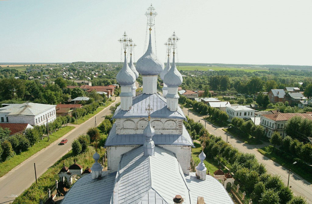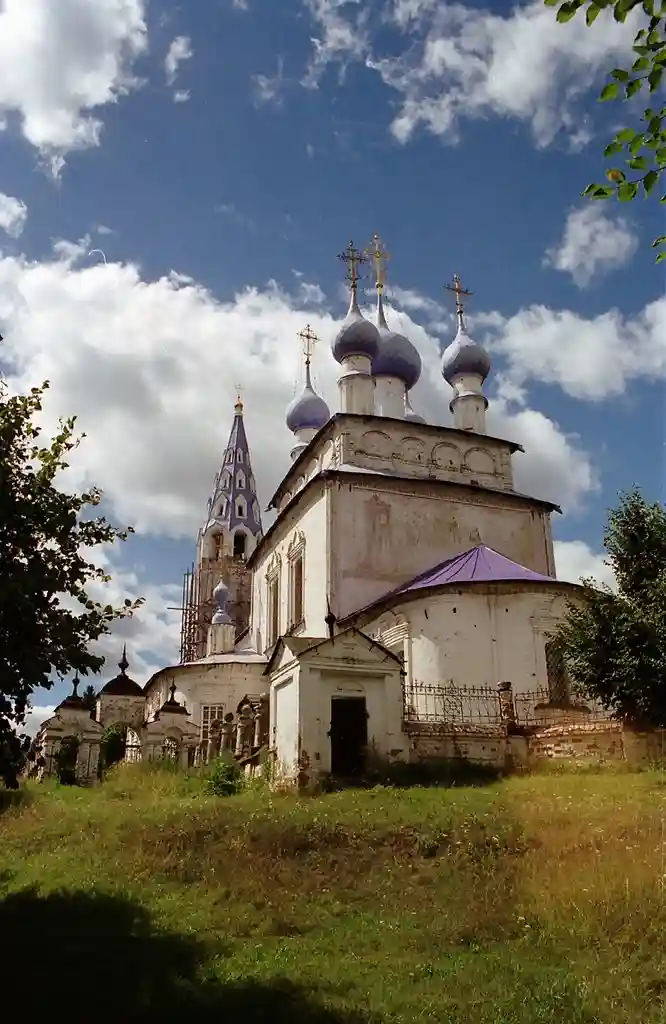 - Крестовоздвиженская церковь с шатровой колокольней, XVIII век, резной иконостас, росписи ярославских мастеров, 1807.