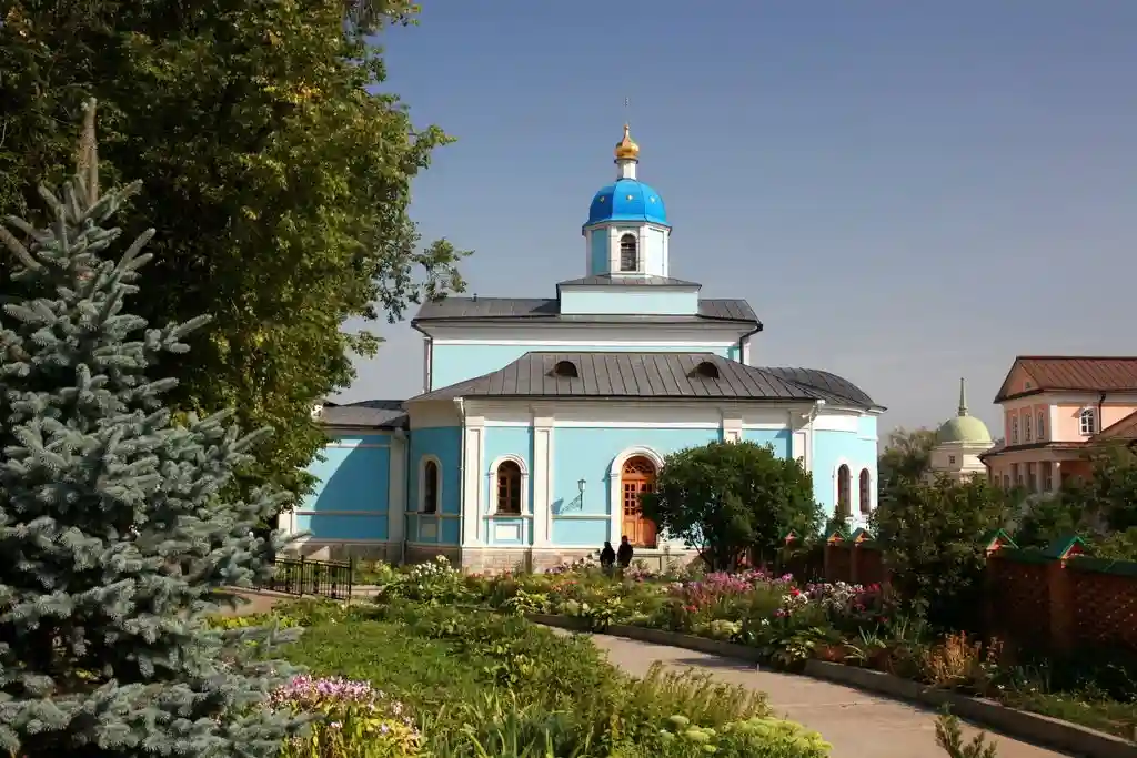 - Введенский собор — главный храм обители (построен в 1750—1771 годах). Освящен в честь Введения во Храм Пресвятой Богородицы: Имеет три придела: главный — Введения во Храм Пресвятой Богородицы, северный — преп. Амвросия старца Оптинского, южный — Святителя Николая Чудотворца. Святыни: в храме находятся св. мощи преподобных Амвросия и Нектария старцев Оптинских, а также особо почитаемая Казанская икона Божией Матери. Во Введенском храме совершаются ежедневно: полунощница, ранняя литургия, панихида, молебен с акафистом преп. Амвросию. В воскресные дни: ранняя литургия, молебен с акафистом преп. Амвросию.