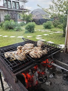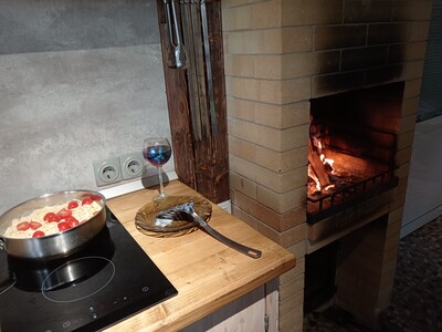 - Кухня со всем необходимым для самостоятельного приготовления пищи: плита, свч печь, холодильник, посуда, шампуры, решётка для гриля.