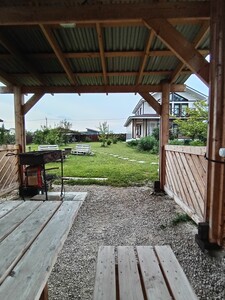 Участок полностью огорожен, классная мангальная зона с навесом. Сразу за домом тропинка вдоль реки, гуляли там. Сам поселок очень спокойный, тихо и хорошо, людей только издалека видела.