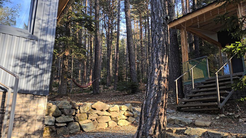 Домик предлагает комфортное проживание для 2-3 человека, оснащен собственным туалетом, душем, телевизором, а также wi-fi и собственной мини-кухней с посудой. С веранды открывается великолепный вид на лес и горы, Возможны варианты размещения: двуспальная кровать + двуспальный раскладной диван. У домика огромная открытая веранда с видом на лес и горы, где можно посидеть на свежем горном воздухе в любую погоду. Отлично подойдет как для отдыха родителей с детьми, так и семейных пар. Идеальное место для отдыха от городской суеты среди хвойного леса, всего в нескольких минутах езды от основных достопримечательностей