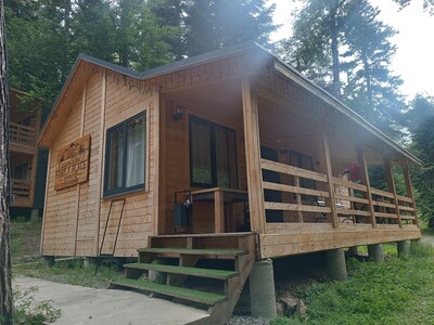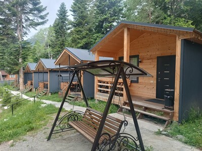 Гостевой дом на базе отдыха в лесу, недалеко от центра– это уютный объект размещения с комфортабельными номерами, основными удобствами и гостеприимной атмосферой. Он предлагает гостям место для проживания с домашней обстановкой и удобным доступом. В нашем домике: двуспальная кровать в изолированной спальной комнате, выдвижной удобный диван на двоих, в домиках имеется тв, проводной интернет, холодильник, фен, мыло, гель для душа, тапочки, туалетная бумага, зубная паста, зубные щетки, вся необходимая посуда и техника, выдаются шампура, казаны, сетки. Так же есть своя терраса, где вы можете обедать и любоваться красивым видом.