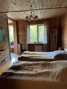+ Отличная квартира из свежего дерева. Чисто и уютно. Есть всё необходимое. Рядом скважины с марциальной водой, санаторий. Из окна прекрасный вид на лес и часовню. Спасибо большое!!!16.06.2025Суточно
