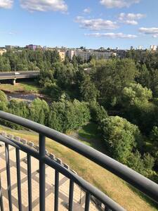 В квартире есть все для комфортного проживания: от столовых приборов до освещения на балкончике с потрясающим видом на Лососинку.