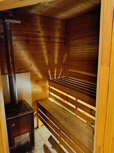+ Домик внутри соответствует фото, нам все понравилось, без претензий, соотношением цена/качество остались довольны. Жили вдвоем с подругой 2 суток в середине октября, заселение возможно с собаками, что для нас было принципиально. В доме тепло, есть все необходимое. Сауна на дровах, протапливается супер быстро, мы в восторге! До озера бежать, пожалуй, нырять далековато, но возможность есть.