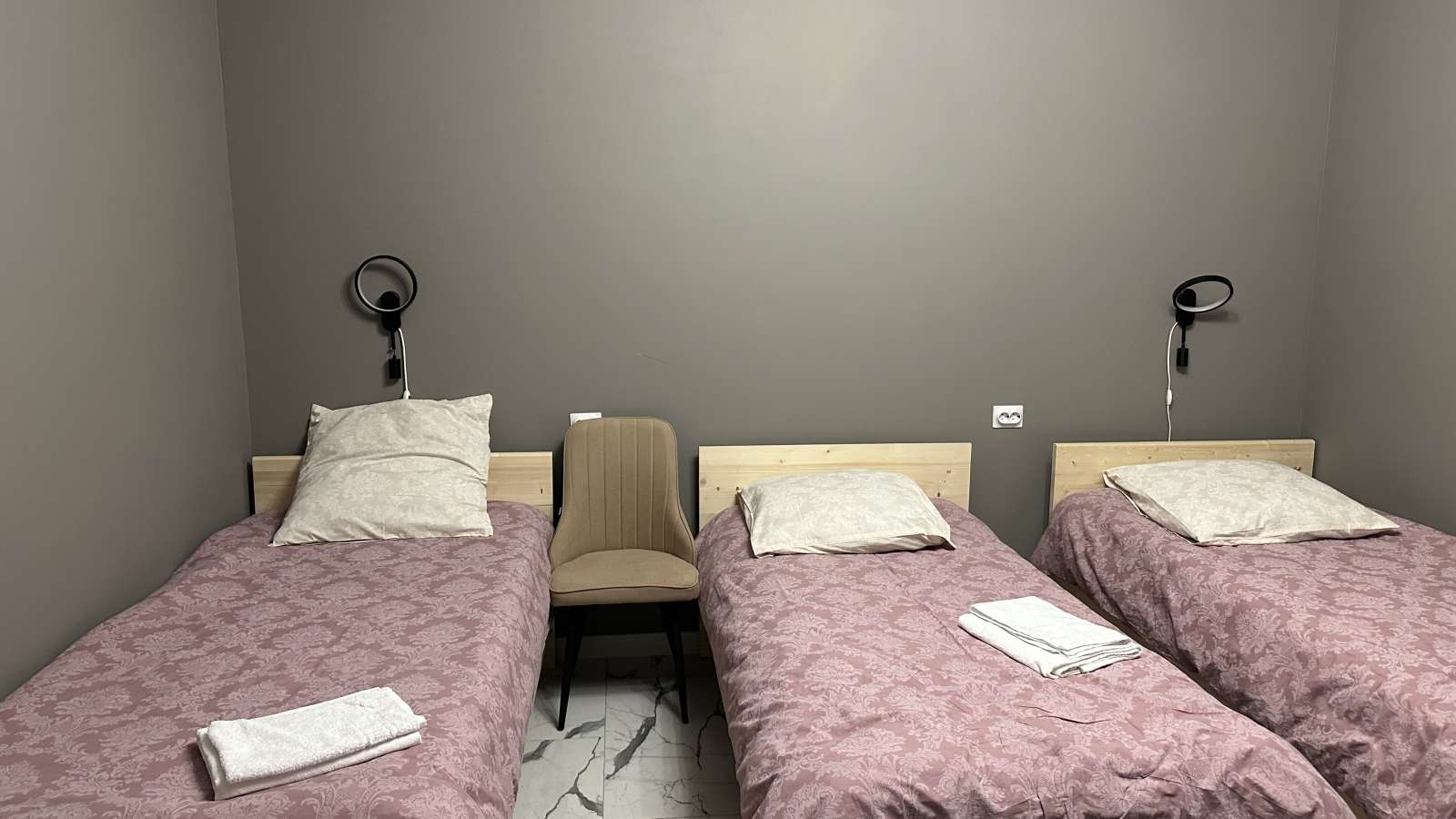 В Мини-Отеле «Лотос» Вы можете забронировать номера: Двухместный номер с 2 отдельными кроватями стандарт, Трёхместный номер стандарт, Четырёхместный номер 2-х комнатный. Свободные номера можно проверить, задав даты поездки.