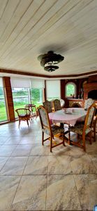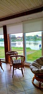 Зал барбекю с тёплым полом и печью для приготовления любимых блюд находится на первом этаже и открывает замечательный панорамный вид на реку. Обеденный стол из натурального дерева и мягкими стульями, кресло-качалка ручной работы, горка для посуды станут верными друзьями во время трапезы.