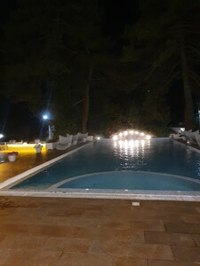 На территории отеля: открытый летний бассейн, бар, ресторан, стойка регистрации, парковка