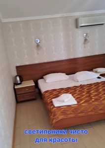 - Тараканы - в основном в ванной. В первой комнате не работал светильник и батарейки в пульте столетней давности. В спальне не работают оба светильника, батарейки столетие, аж покусанные уже кем то. В ванной очень слабый напор, купаться приходится долго, плюс старый смеситель который постоянно самостоятельно выбивает обратно на кран. Светильник на балконе не работает так же, и плюс нет навеса, то есть три дня что был дождь мы туда сюда тягали стулья в комнату. Диван в проходной комнате так же сломан, постоянно соскакивает с пазиков и ребёнок спал на островке дивана. Касаемо предоставляемого инвентаря-заселялись втроём в двухкомнатные "апартаменты", одеяла и постельного предоставлено было на двоих, бегали и просили ещё. Посуда предоставлена в уникальном виде, три тарелки (одна ужасная на вид, как будто грязная), и три стакана стеклянных, и нож кривой и тупой... Не вилки, не ложки-ничего! Присутствует одна микроволновка на два 4-этажных здания, стоит у администрации на первом этаже, мы с четвёртого естественно не пользовались. Касаемо персонала не могу не добавить, одна очень приятная и вежливая женщина, вторая же (молодая и высокая) - максимально бестактная особа, отбила окончально желание на прибывание в данном отеле. Так же в отеле якобы есть бассейн, ну, во-первых, он находится через 2 дома от отеля, во-вторых, купаться там некомфортно, потому что бассейн хоть и выглядит большим, но когда в нем 25 человек одновременно-это как селёдки в банке.... Сходили туда всего один раз, и желание пропало полностью, мне случайно двинули рукой в глаз, в ухо прям налили воды-два дня было заложено, посидеть на скамейке (их там 3) я не смогла в ожидании ребёнка, потому что люди там положили вещи везде и меня трижды с просьбой отойти от вещей сгонял на другие лавки, на третий раз взорвало меня и мы ушли..... Больше не ходили, ведь одна дочка (10 лет) в бассейне не могла находиться (требование отеля), а у меня желание отпало полностью. Отсутствие кухни тоже разочаровало, так как питаться всё время в столовых ну максимально накладно, даже в самых бюджетных столовых выходило 850 рублей на двоих за раз, либо 1200 на троих за раз, ну как бы 3500 отдавать в день только на еду не считая других покупок это дорого. Питались бутербродами с колбасой и сыром и дошираками..... Касаемо уборки в номерах, спустя 4 дня отдыха на полу была жесть, ведь отель возле дороги и плюс песок который приносился с моря, в итоге нашли горничную и услышали что если хотите порядок то вот вам швабра и тряпка, убирались сами (на 6 день прибывания узнали что можно оставлять ключ на администрации и в номере будут убирать). Заезд после 14 часов, выезд после 12. Мы приехали в 10 утра и вынуждены были 4 часа гулять, хотя с дороги устали. Обратный поезд у нас был в 10 вечера, нам сказали освободить номер до 12 либо доплачивать 1200 и оставаться в номере..... То есть на встречу отель не идёт никак. зато есть обалденный трансфер, стоимостью на секундочку 800 рублей, а мы доехали с жд вокзала за 200 рублей, вывод делайте сами. Так же есть нюанс который нигде не озвучивают, узнали случайно-имеется сбор курортный, 30 рублей с человека в сутки. Детей не считают. Не все к сожалению фото смогла добавить.