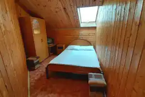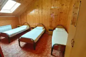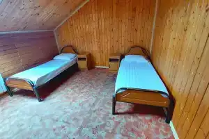 В номере двухспальная кровать, можно дополнительно поставить ещё односпальную. Шкаф, тв. Туалет, душ... . Большая кухня на два номера.