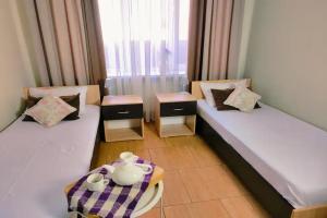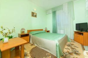 Номер оборудован: двуспальная кровать или две односпальные кровати, прикроватные тумбочки, зеркало,... шкаф, комод, телевизор, мини-холодильник, кондиционер. Ванная комната: душ, зеркало, раковина, полотенцесушитель и туалет.