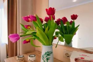 Квартира имеет удобное месторасположение. Находится недалеко от центра города, центрального рынка,... кинотеатров, магазинов, кафе и в то же время в месте, где невозможно разогнаться мотоциклистам. А значит, здесь всегда тихо и спокойно. До песочного пляжа "центральный", центральной набережной и других морских объектов неспешным шагом по тенистым улочкам 20 минут (проверено многими постояльцами). Если желаете галечный пляж, нужно пройти по набережной подальше или проехать на автобусе №24, который останавливается недалёко от дома и довозит до самого моря. В квартире имеется всё для отдыха, всегда есть холодная и горячая вода, беспроводной интернет. Еще...