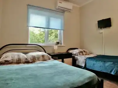 В Гостевом доме «Герань» Вы можете забронировать номера: Двухместный номер с 1 кроватью и дополнительным спальным местом, Трёхместный номер с тремя раздельными кроватями, Трёхместный номер семейный. Свободные номера можно проверить, задав даты поездки.