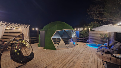 Глэмпинг-сфера принимает гостей 365 дней в году. Находится дом на терассе со встроенным индивидуальным бассейном, беседка с мебелью, кресло кокон, мягкие лежаки, подсветки, зелёные зоны, мангальная зона со всем инвентарем. Бассейн подогревается, дом отапливается и работаем круглогодично. Обогрев бассейна с 1 октября по 15 мая! От моря 2 км (3-5) мин езды. Магазины в 1-2 мин езды. -В доме wi-fi, все удобства и максимум уюта и комфорта: -В санузле: сушилка, фен, гладилка, пылесос, утюг, инвентарь для самостоятельной уборки. -В кухне: вся посуда, приборы, микроволновка, холодильник, электрочайник, плита, кухонный инвентарь. -В комнате: раскладной диван, кровать-антресоль двухспальная, смарт тв, wi-fi, теплые полы, обувница, зона хранения, сплит система, рекуператор, столовая зона, светильники, интерьерные декорации. -Для маленьких детей предоставляем кроватку, стул для кормления, качель. -Возможно размещение с животными (только строго по согласованию).