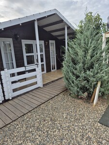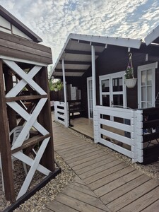 - Однокомнатный домик площадью около 30 кв с собственной террасой и кухней, рассчитан на 4 человек
