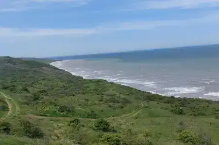 Далеко ли от Уютные домики до ближайшего пляжа?