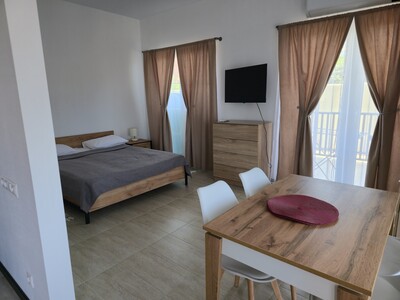 В номерах кондиционеры, в нашем ещё пара кресел была, очень удобно, тк мы с собой брали проектор, вечером сидели фильмы смотрели. Уборку делали 1 раз за наше время отдыха, все отлично.