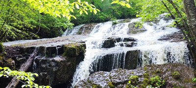 + Домик располагается в максимальном удалении от центра посёлка, в конце улицы. Тишина идеальная. Рядом, метров в двухста от дома, красивейший каскад водопадов.