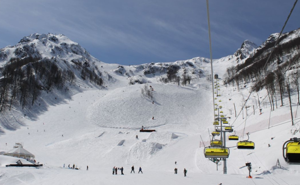 В декабре 2010 года были запущены в эксплуатацию 4 подъёмника: «Олимпия» (560м — 1150 м над уровнем моря), «Заповедный Лес» (1150—1340м), «Кавказский экспресс» (1340—2320м), шестикресельный подъёмник «Волчья Скала» (940—1360 м над у.м.). Общая протяжённость горнолыжных трасс составила 38 км, в том числе олимпийских — 9 км. Около 50 гектар горнолыжных трасс были оборудованы системой искусственного оснежения.. В дальнейшем протяжённость олимпийских горнолыжных трасс составила 20 км, а общая длина всех трасс — 102 км.