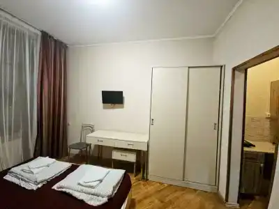 - Грязно, всё старое, уставшее, сушилка для белья сломана, розеток мало, залог 5000 спасибо что возращают сразу) в коридоре он же кухня не работает свет, вай-фай не работал, всё не уютное и не удобное. Жили 1 суток. Повезло, что не выбрали этот "отель" на более длительный срок. На сутки закинуть вещи и уйти пойдёт