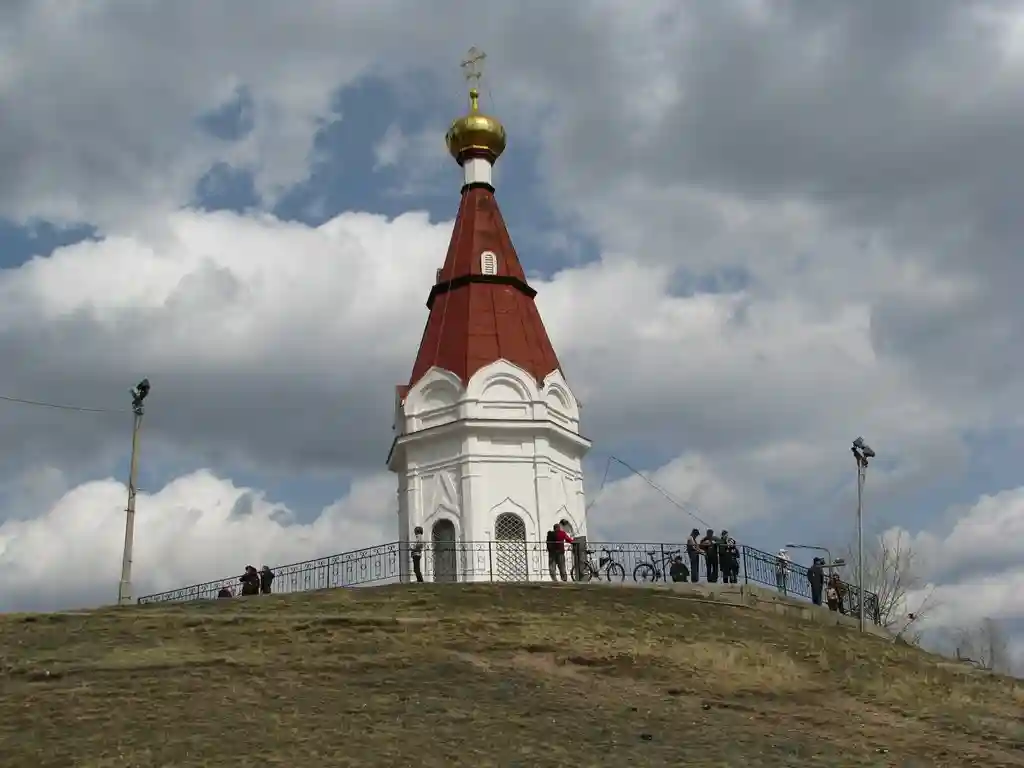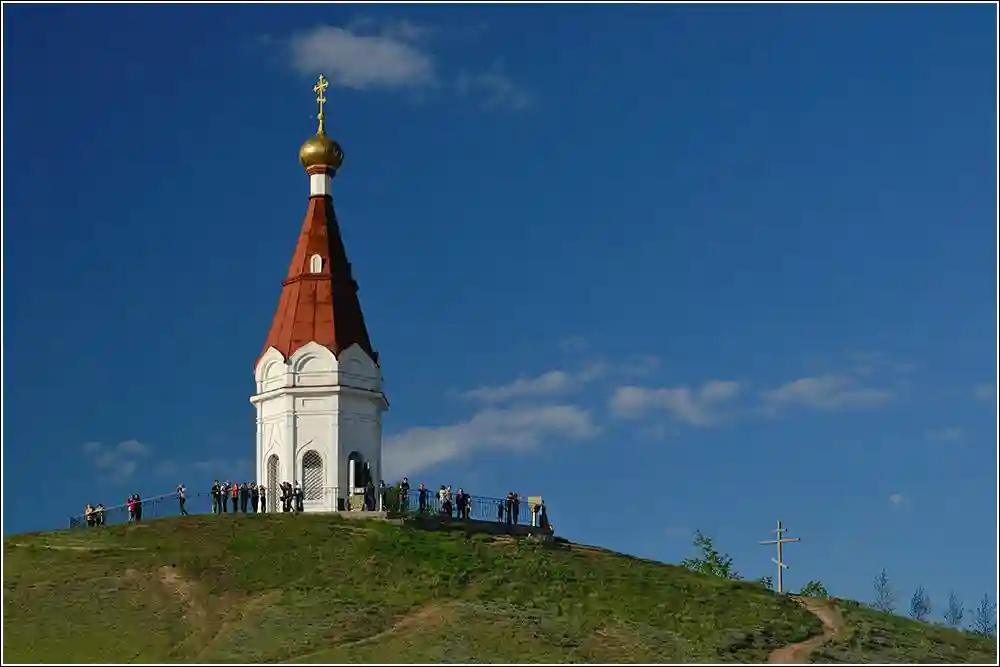 Это потрясающе красиво. Красноярск - сравнительно плоский город, а часовня стоит на возвышенности.